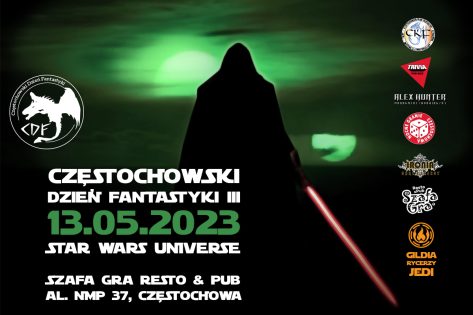 Zbliża się kolejna edycja Częstochowskiego Dnia Fantastyki. Najbliższa odsłona mini-konwentu odbędzie się 13 maja, a tematem przewodnim są „Gwiezdne Wojny”. Nowa będzie też lokalizacja! Wydarzenie przenosi się do Szafa Gra Rest & Pub (Al. Najświętszej Marii Panny 37), gdzie czekają na was klimatyczne wnętrza rozmieszczone na dwóch skrzydłach i dwóch poziomach, taras, ogródek, dwa bary serwujące jedzenie i napoje.