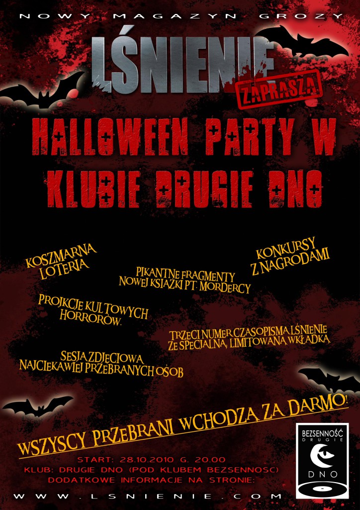Czasopismo grozy Lśnienie i wrocławski klub Drugie Dno zapraszają na wyjątkową noc w klimatach Halloween. Bawcie się przy muzyce grozy, weźcie udział w specjalnych konkursach Jigsawa i zobaczcie kultowe filmy grozy!