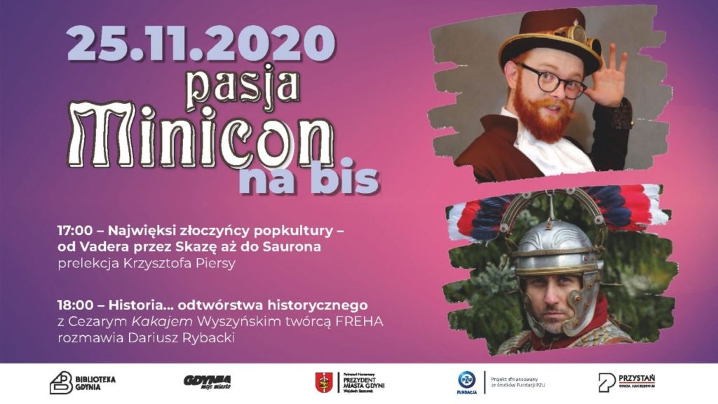 O godzinie 17:00 startuje prezentacja Krzysztofa Piersy, „Najwięksi złoczyńcy popkultury – od Vadera przez Skazę aż do Saurona”, a o 18:00 będziecie mieli okazję posłuchać rozmowy z Cezarym „Kakajem” Wyszyńskim na temat odtwórstwa historycznego. Szczegółowy opis znajdziecie na oficjalnej stronie Biblioteki Gdynia.